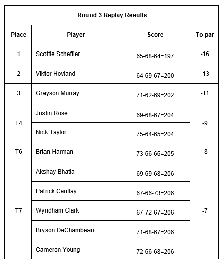 The top of the replay round 3 leaderboard is shown below.